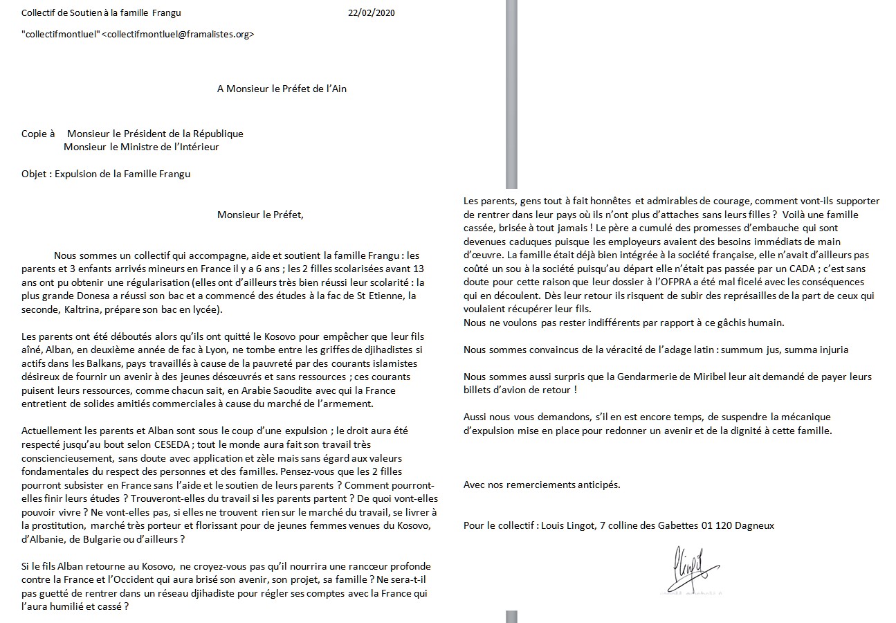 de plus en plus de migrants déboutés du droit d’asile reçoivent des obligations de quitter le territoire français et sont conduits au centre de rétention pour être expulsés de France. avec les nouveaux textes en France, en Europe ces situations sont de plus en plus courantes. Aujourd’hui, c’est une partie d’une famille de Montluel, en janvier c’était une de Bourg, dont un membre a été expulsé. et toutes les situations dramatiques que nous ne connaissons pas. Nous pouvons chacun-e envoyer un courrier au préfet de l’Ain.