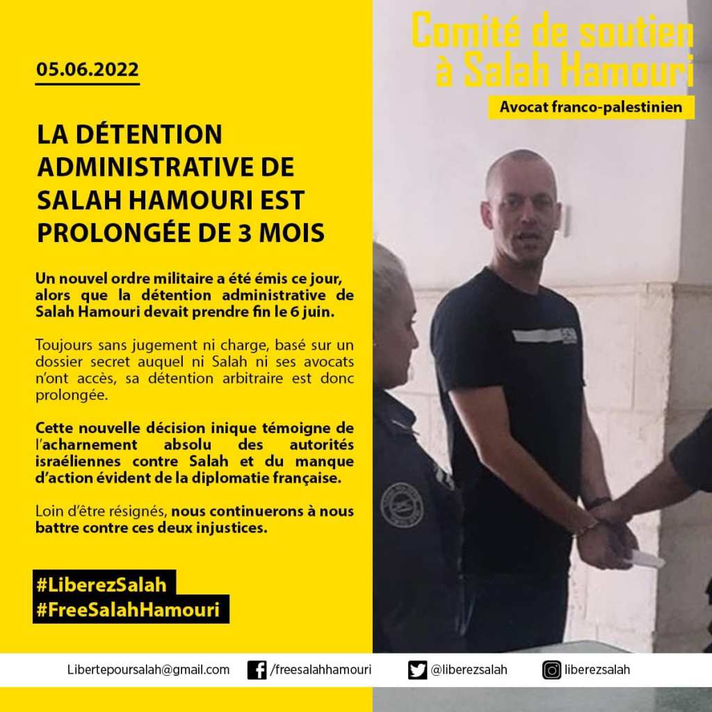 Je prends connaissance avec stupéfaction de votre déclaration publiée il y a un instant ( 23 h 24) concernant la situation de notre compatriote Salah Hamouri.