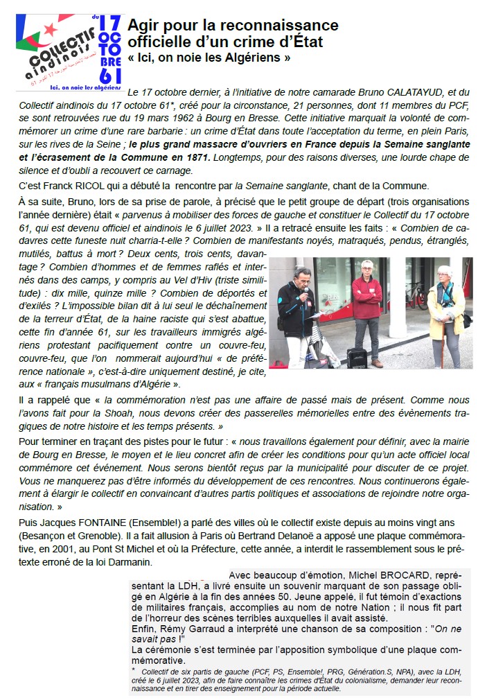 23 octobre 2023 pcfbourgbresserevermont 17 octobre, retour .. Partager : Cliquer pour partager sur X(ouvre dans une nouvelle fenêtre) X Cliquez pour partager sur Facebook(ouvre dans une nouvelle fenêtre) Facebook J’aime chargement… Similaire