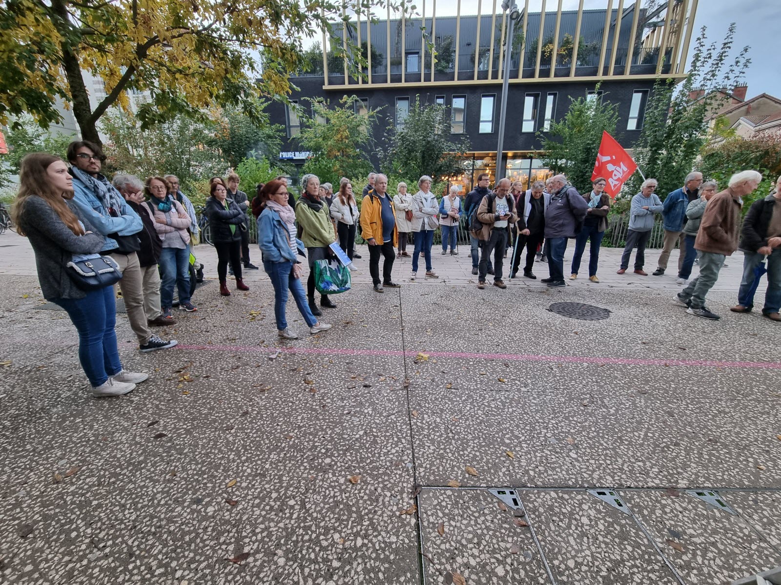 18 octobre 2024 pcfbourgbresserevermont la-commemoration-des-massacres-du-17-octobre-1961-a-reuni-une-cinquantaine-de-personnes-ce-jeudi-elle-s-est-achevee-par-l-apposition-d-une-plaque-symbolique-en-lieu-et-place-du-rassemblement-qui-avait-lieu-rue-d