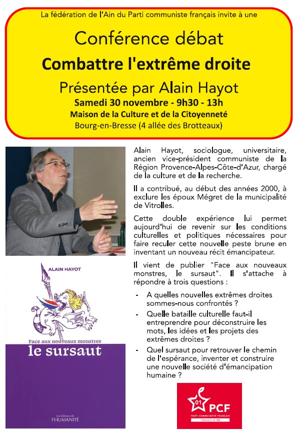 19 novembre 2024 pcfbourgbresserevermont Combattre l’extrême-droite Partager : Cliquer pour partager sur X(ouvre dans une nouvelle fenêtre) X Cliquez pour partager sur Facebook(ouvre dans une nouvelle fenêtre) Facebook J’aime chargement… Similaire