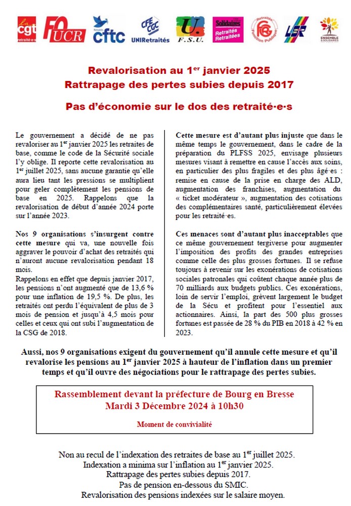 1 décembre 2024 pcfbourgbresserevermont On y sera! (pensions, retraites.. ..tract retraitePartager : Cliquer pour partager sur X(ouvre dans une nouvelle fenêtre) X Cliquez pour partager sur Facebook(ouvre dans une nouvelle fenêtre) Facebook J’aime chargement… Similaire