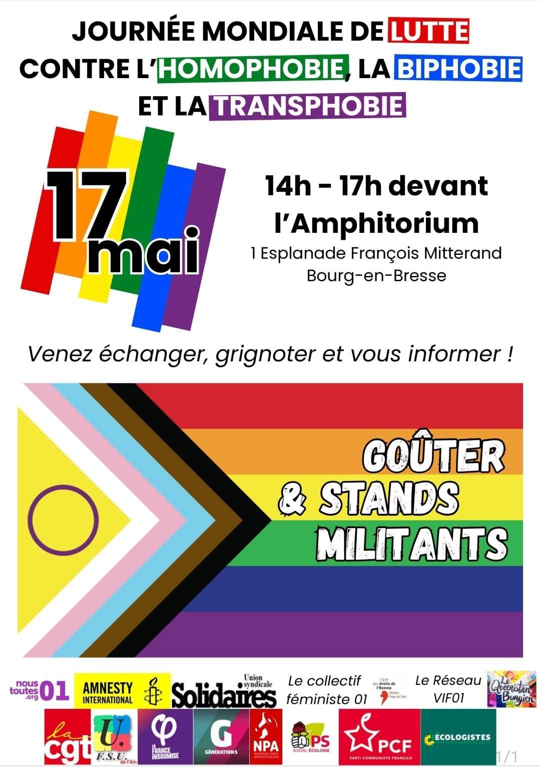 rassemblement à Bourg en Bresse le samedi 17 mai de 14h à 17h devant
