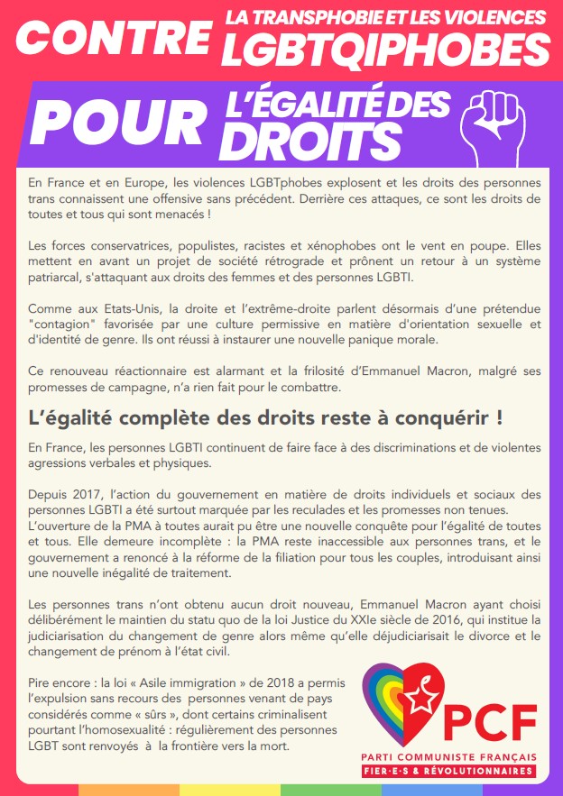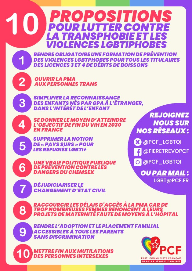 propositions pour lutter contre la transphobie et les violences LGBTiphobes.