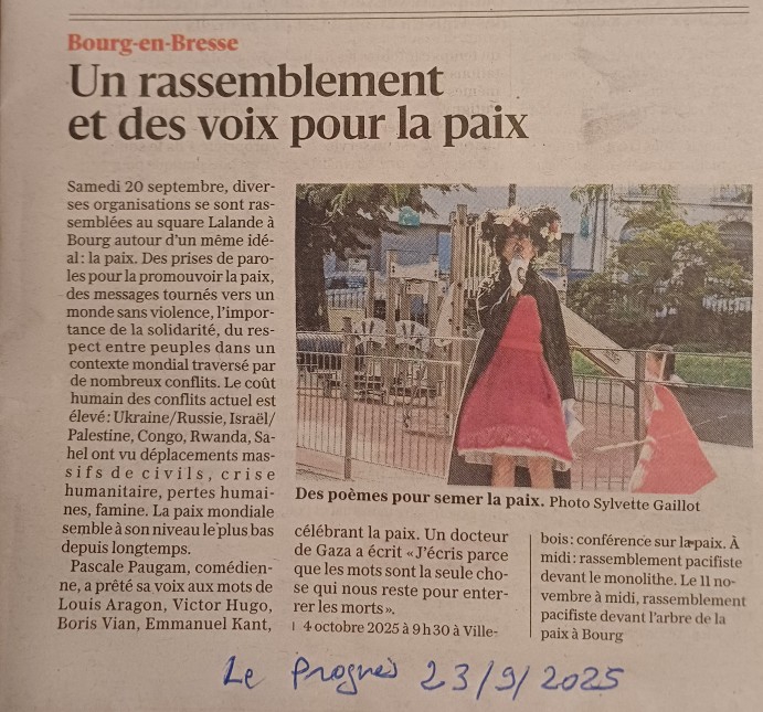 Intervention section PCF-BBR à Journée internationale de la paix. 20 septembre 2025, Bourg en Bresse.